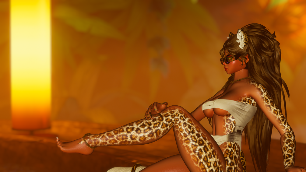 · Face (Sculped by me), Body (Sculped by me), Body Tattoos, Face MakeUp, Leopard MakeUp (By me), Eye texture (By me), Nose Septum, Nose Piercing, Earrings, Nails, Rings, Claws, Headphones, Russian Hat, Leopard Set, Shades, Chain, Cuban Link, Torus, Baby Hairs, Hair 1 (Edited by me), Hair 2, Hair 3, Arm Fishnet, Leg Fishnet x Skirt, Bra x Panty, Pasties, Jacket x Top Strap, Tac Suit x Bottom Straps, Heels, Boots, Socks, Leopard Plushie, Crystal Matcap, Hair texture, Eyelashes.